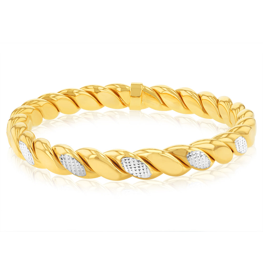 9ct Yellow Gold Silverfilled Fancy Diamond Cut Twisted Bangle