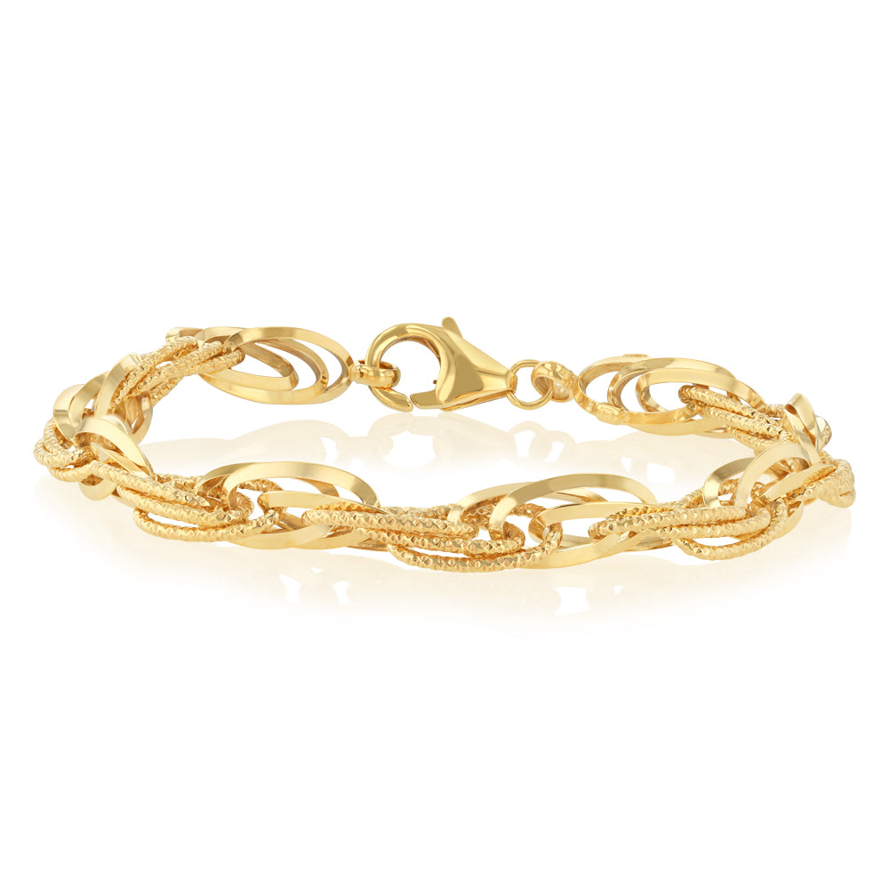 9ct Yellow Gold Silverfilled Fancy Textured And Plain Links 20cm Bracelet