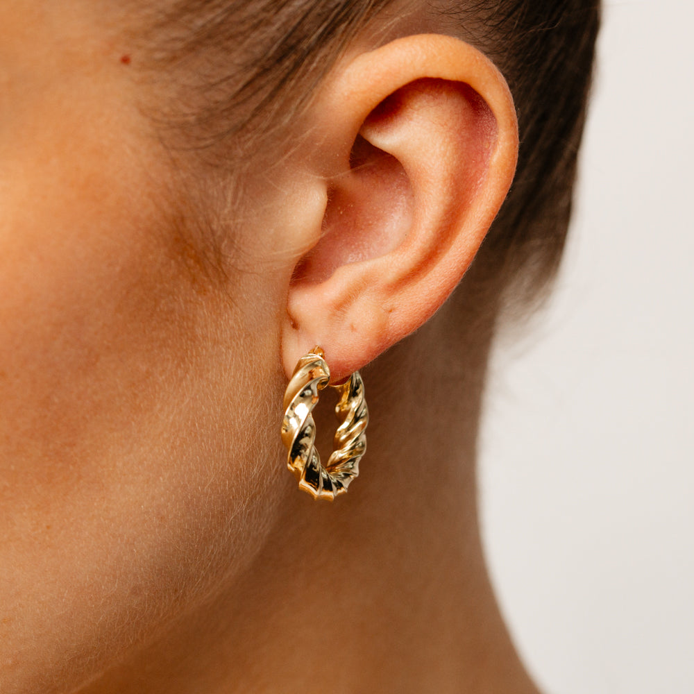 9ct Yellow Gold Silverfilled Fancy Twist Hoop Earrings