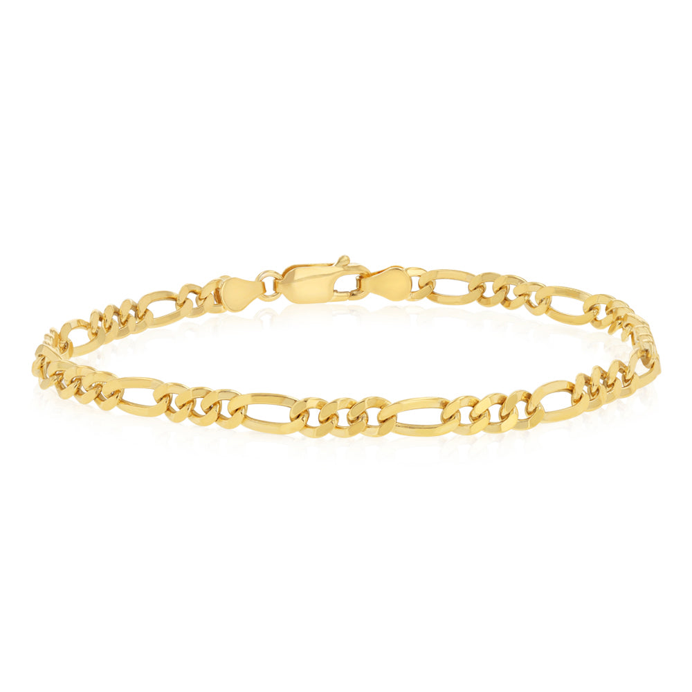 9ct Yellow Gold Silverfilled Figaro 1:3 100 Gauge 19cm Bracelet