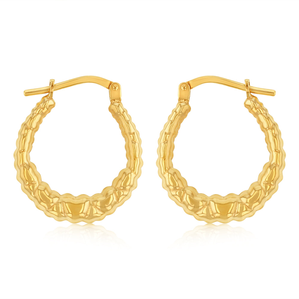 9ct Yellow Gold Silverfilled Patterned Creole Hoop Earrings