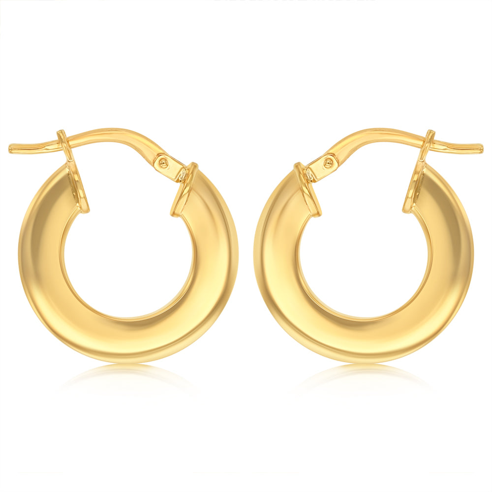 9ct Yellow Gold Silverfilled Polished Broad 10mm Hoop Earrings