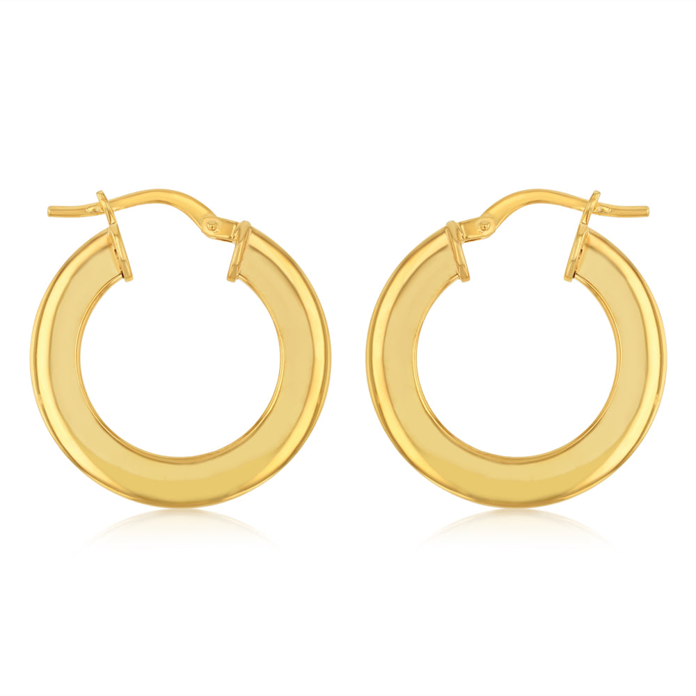 9ct Yellow Gold Silverfilled Polished Broad 15mm Hoop Earrings