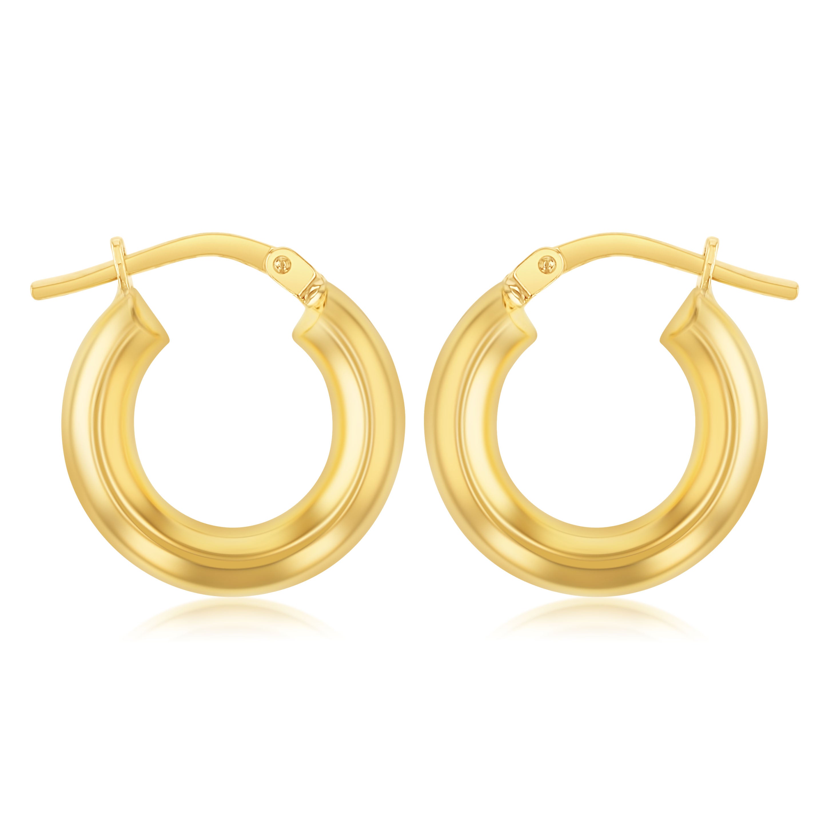 9ct Yellow Gold Silverfilled Polished Tube 15mm (External) Hoop Earrings