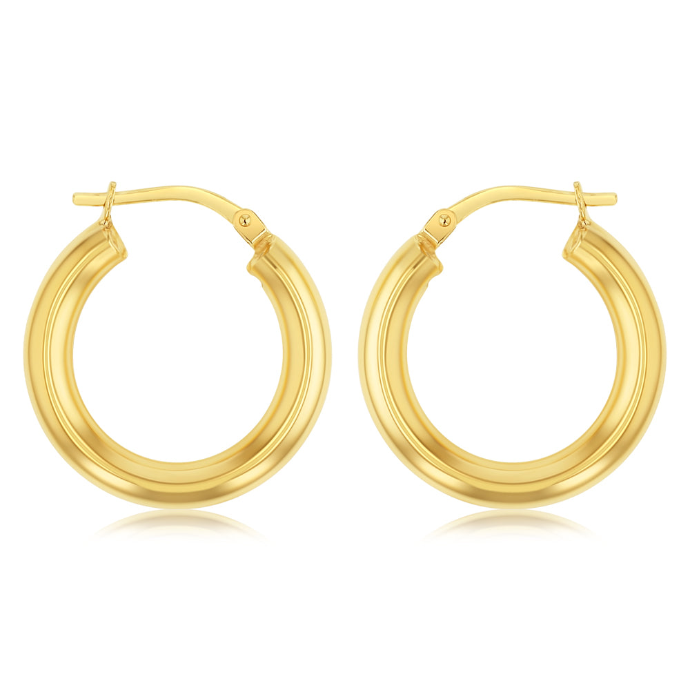 9ct Yellow Gold Silverfilled Polished Tube 20mm Hoop Earrings