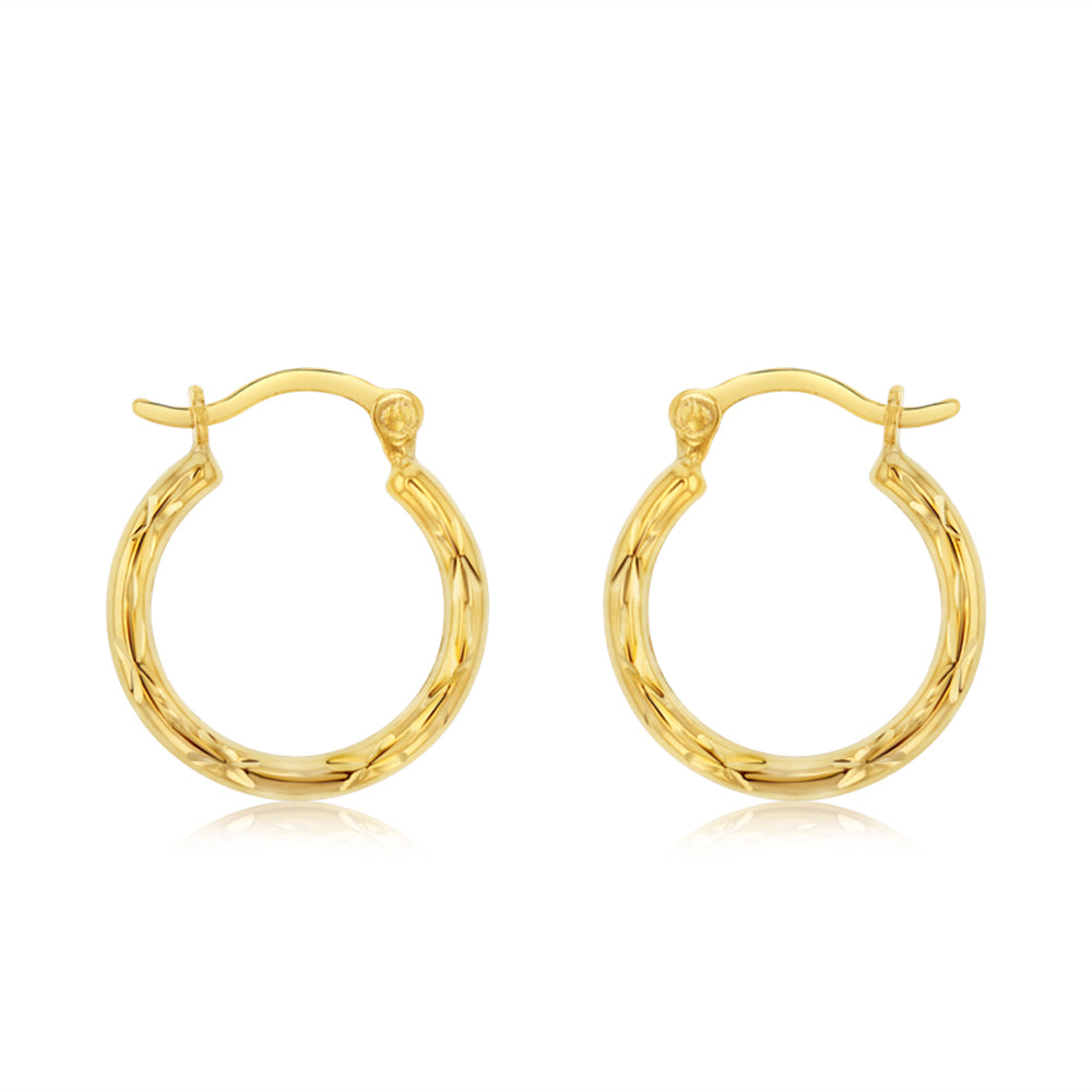 9ct Yellow Gold Silverfilled Superlight Diamond Cut Stamped Hoop Earrings