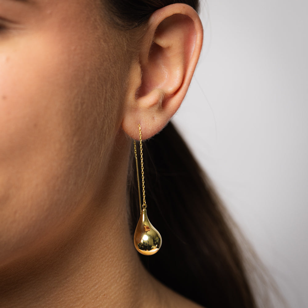 9ct Yellow Gold Silverfilled Teardrop Threader Earrings
