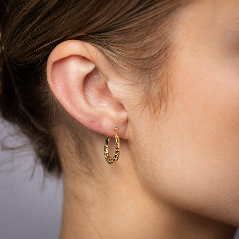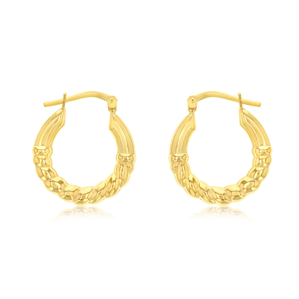 9ct Yellow Gold Silverfilled Textured Hoop Earrings
