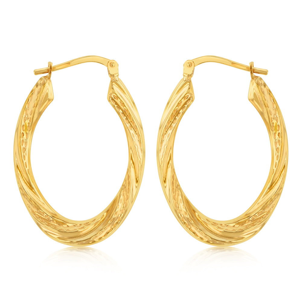 9ct Yellow Gold Silverfilled Textured Twisted Hoop Earrings