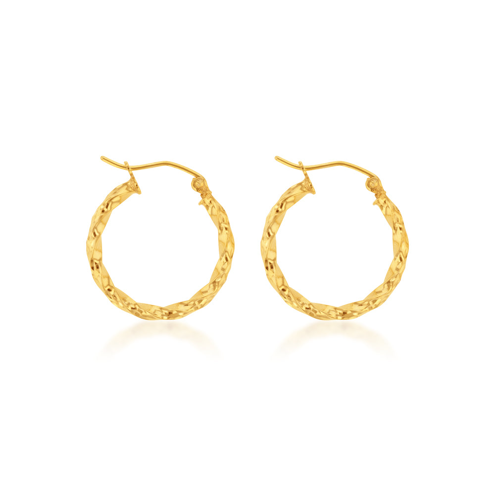 9ct Yellow Gold Silverfilled Twisted Hoop