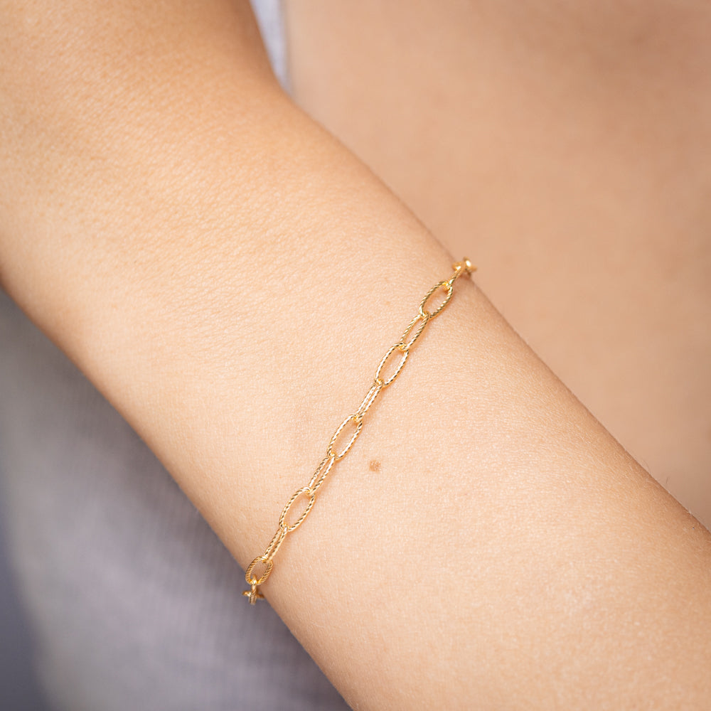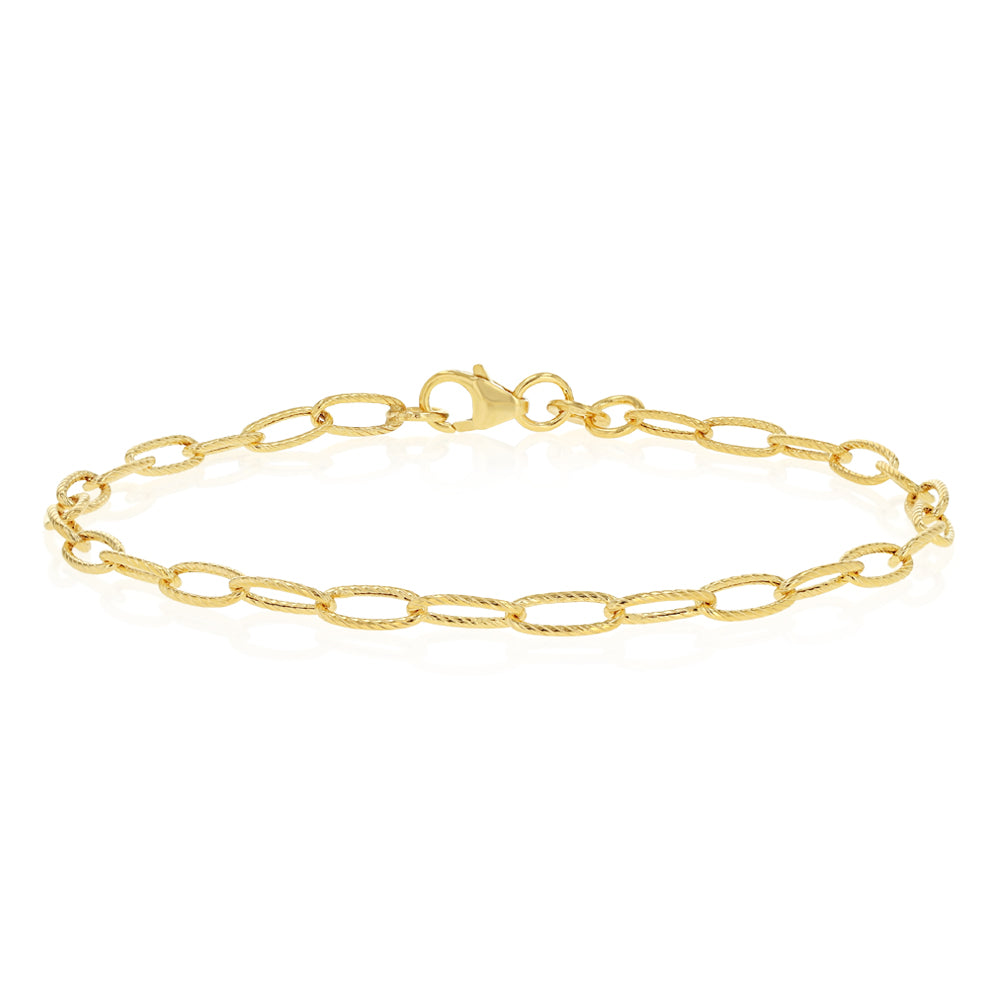 9ct Yellow Gold Sparkle Cable Hollow 19cm Bracelet
