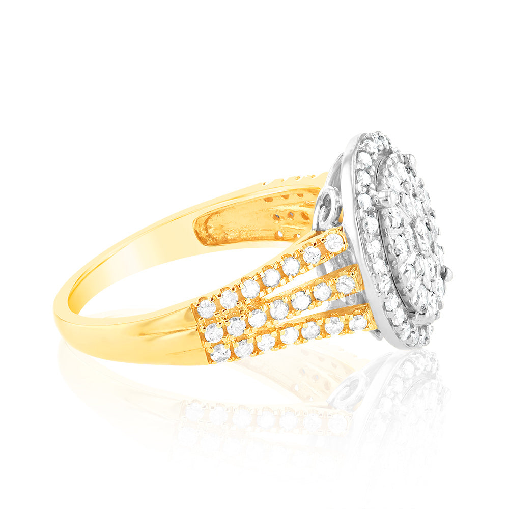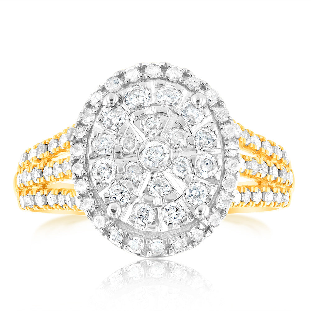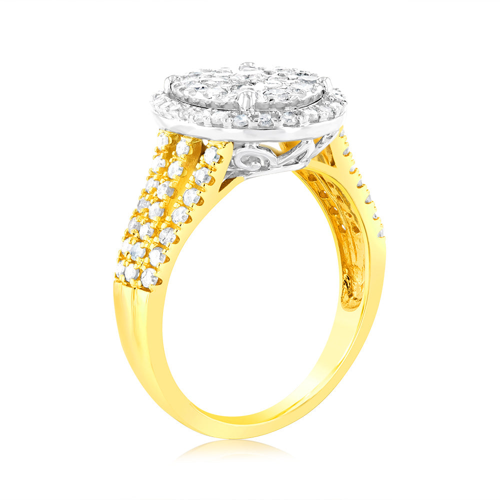 1 Carat Diamond Oval Shaped Ring in 9ct Yellow Gold & Sterling Silver