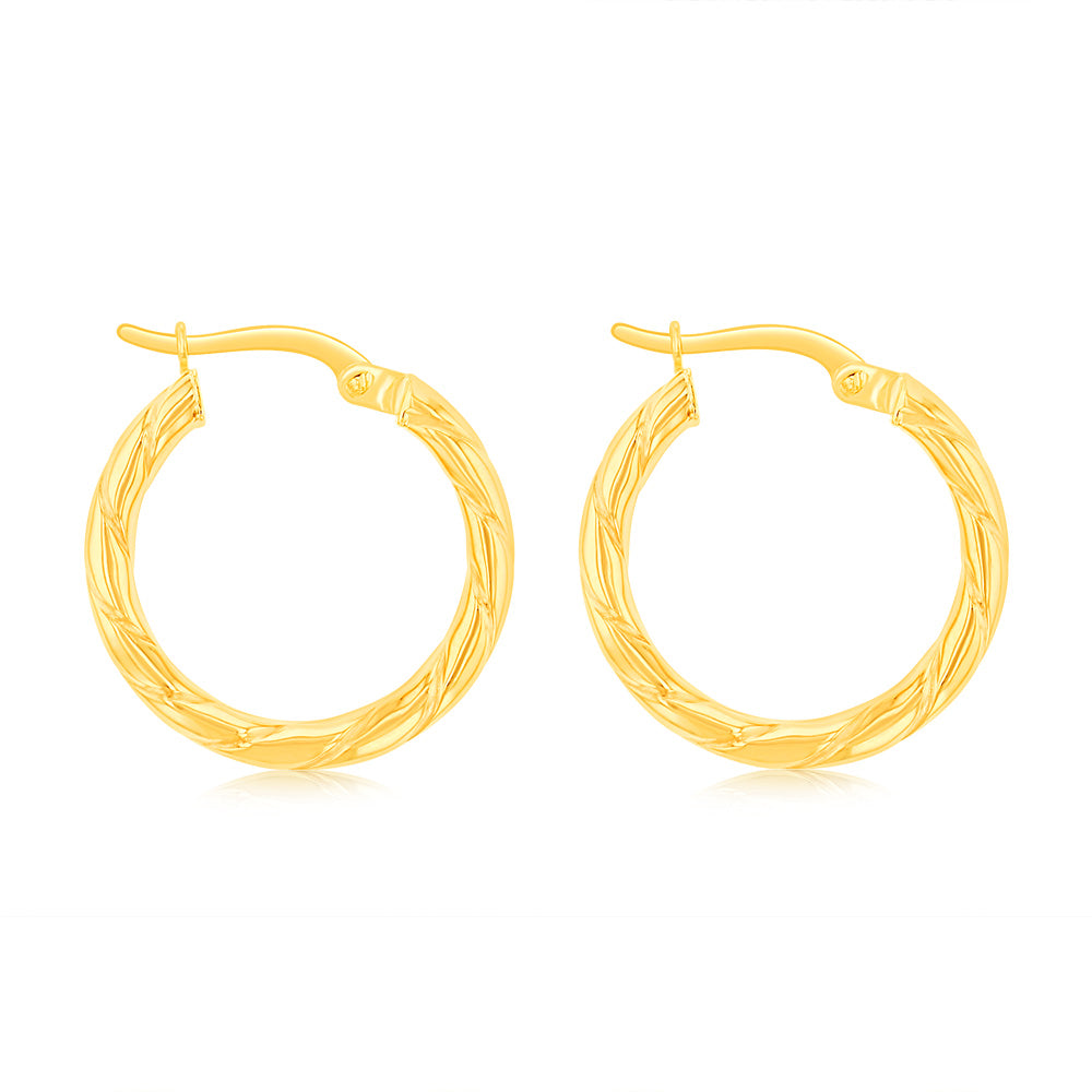 9ct Yellow Gold Stripe Pattern Hoop Earrings