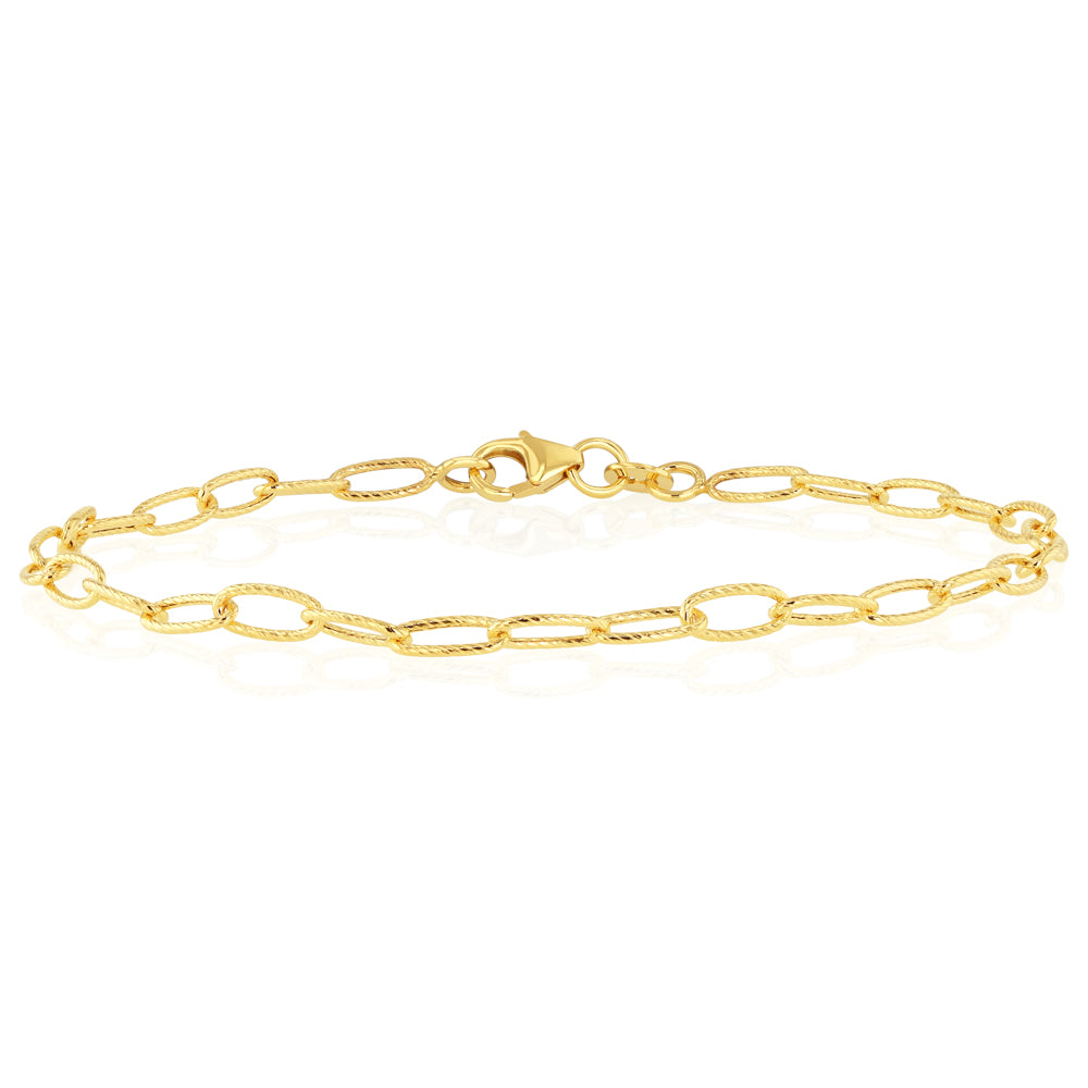 9ct Yellow Gold Textured Paperclip 19cm Bracelet
