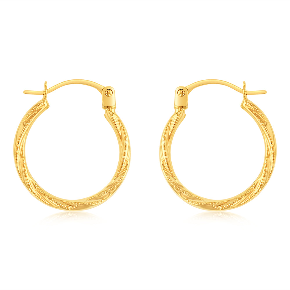 9ct Yellow Gold Textured Twisted Hoop Earrings