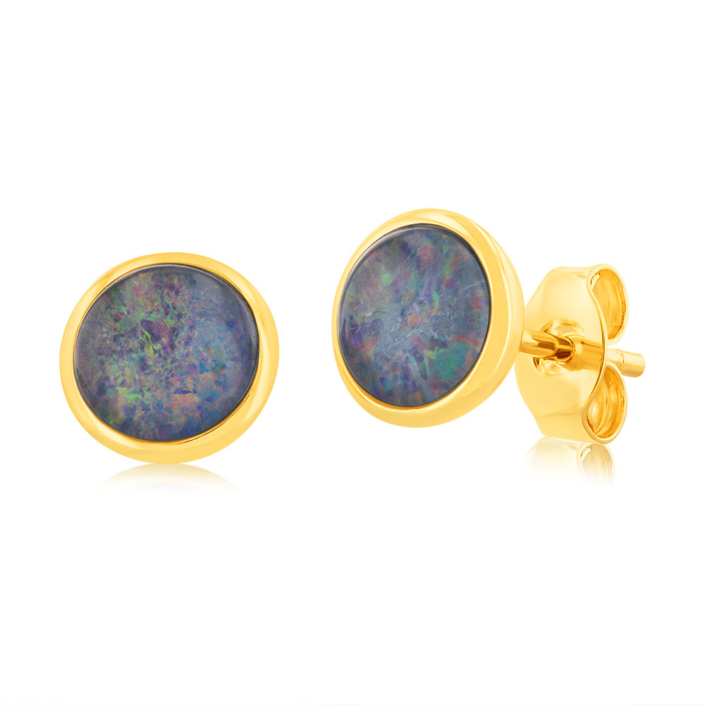 9ct Yellow Gold Triplet Opal Bezel Set Stud Earrings