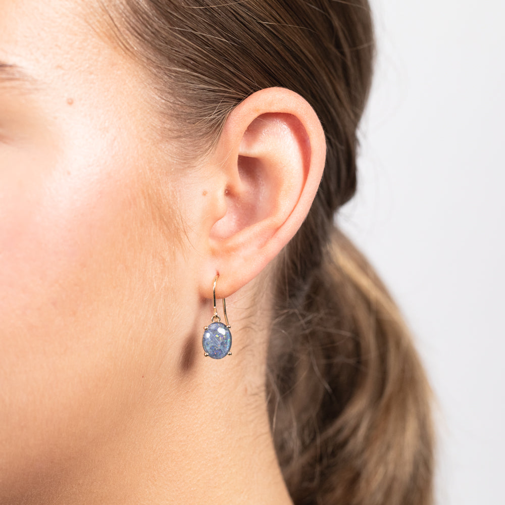 9ct Yellow Gold Triplet Opal Hook Drop Earrings