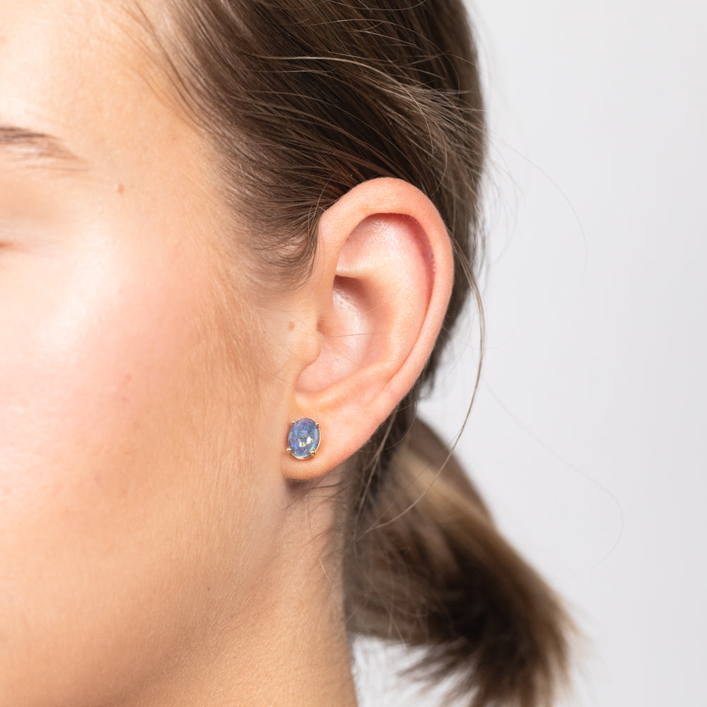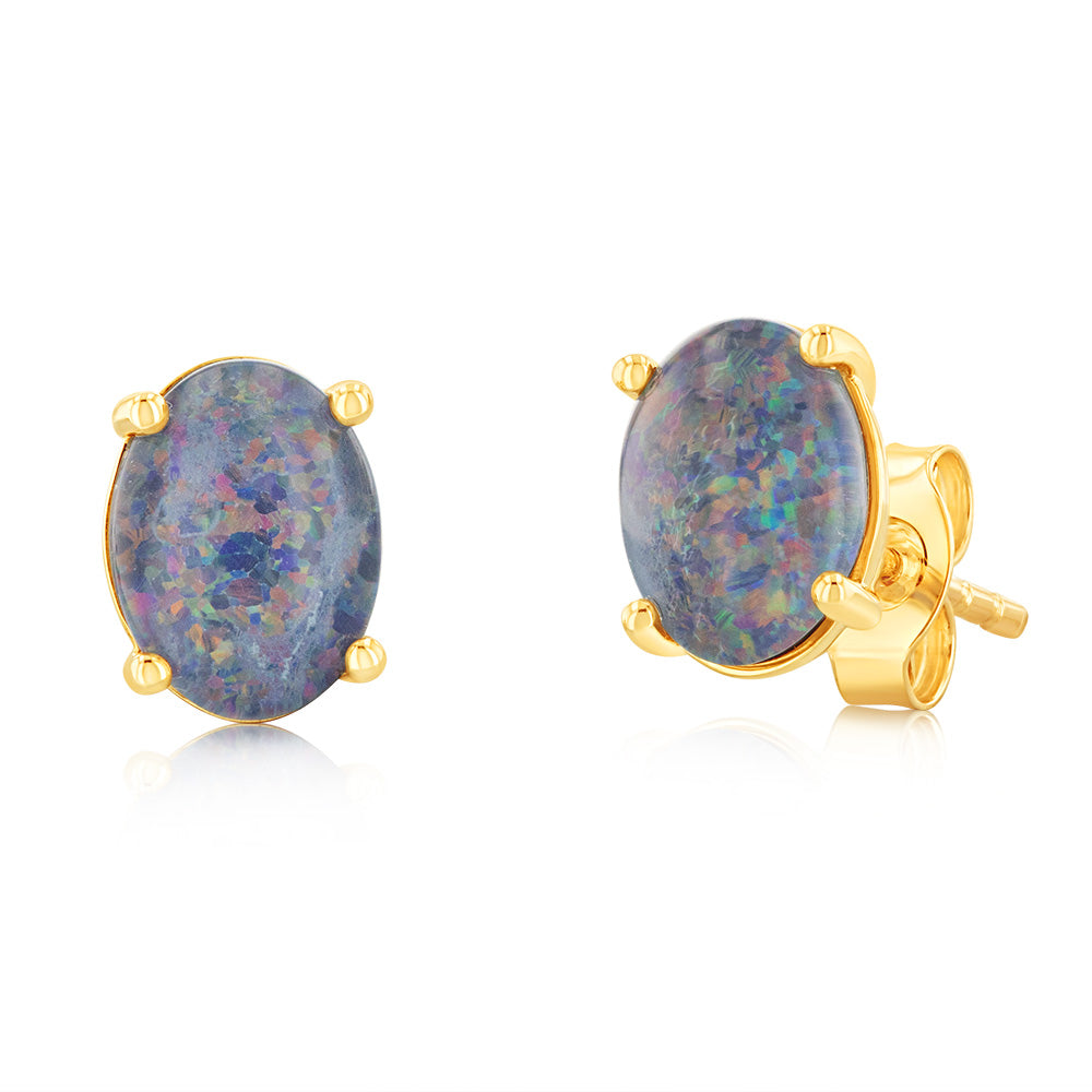 9ct Yellow Gold Triplet Opal Stud Earrings