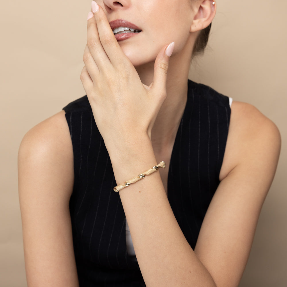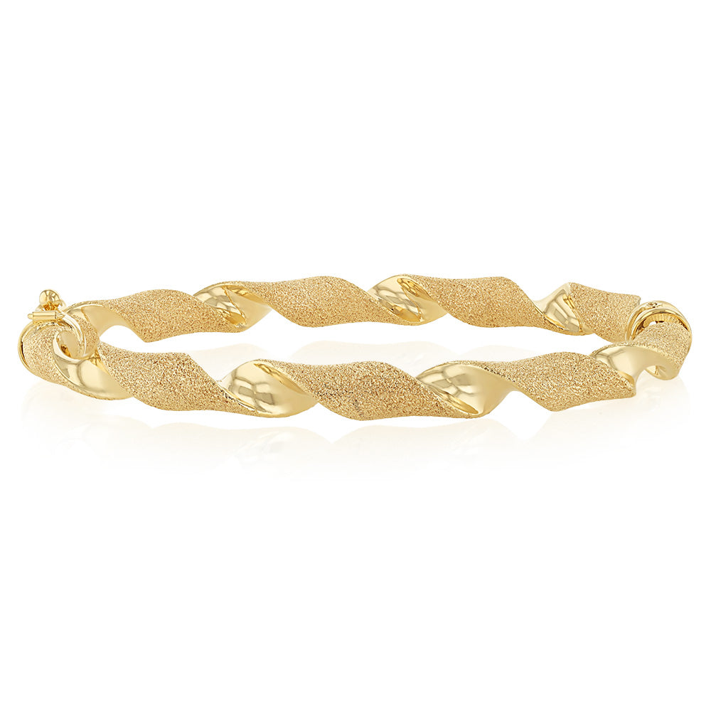 9ct Yellow Gold Twisted Hinged 60mm Bangle