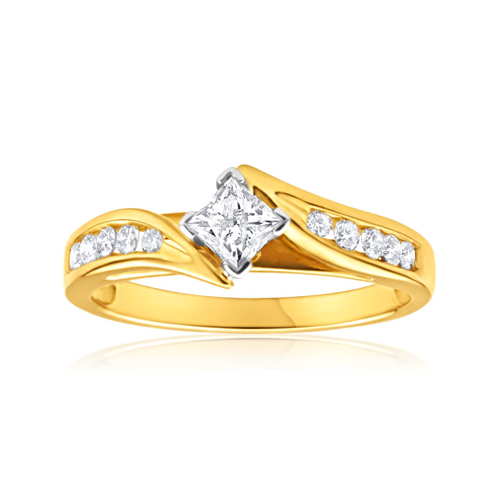 9ct Yellow Gold & White Gold Ring With 1/2 Carat Of Diamonds