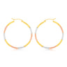 9ct Yellow Rose And White Gold Tri Colour Super Light Diamond Cut Tube Hoop Earrings