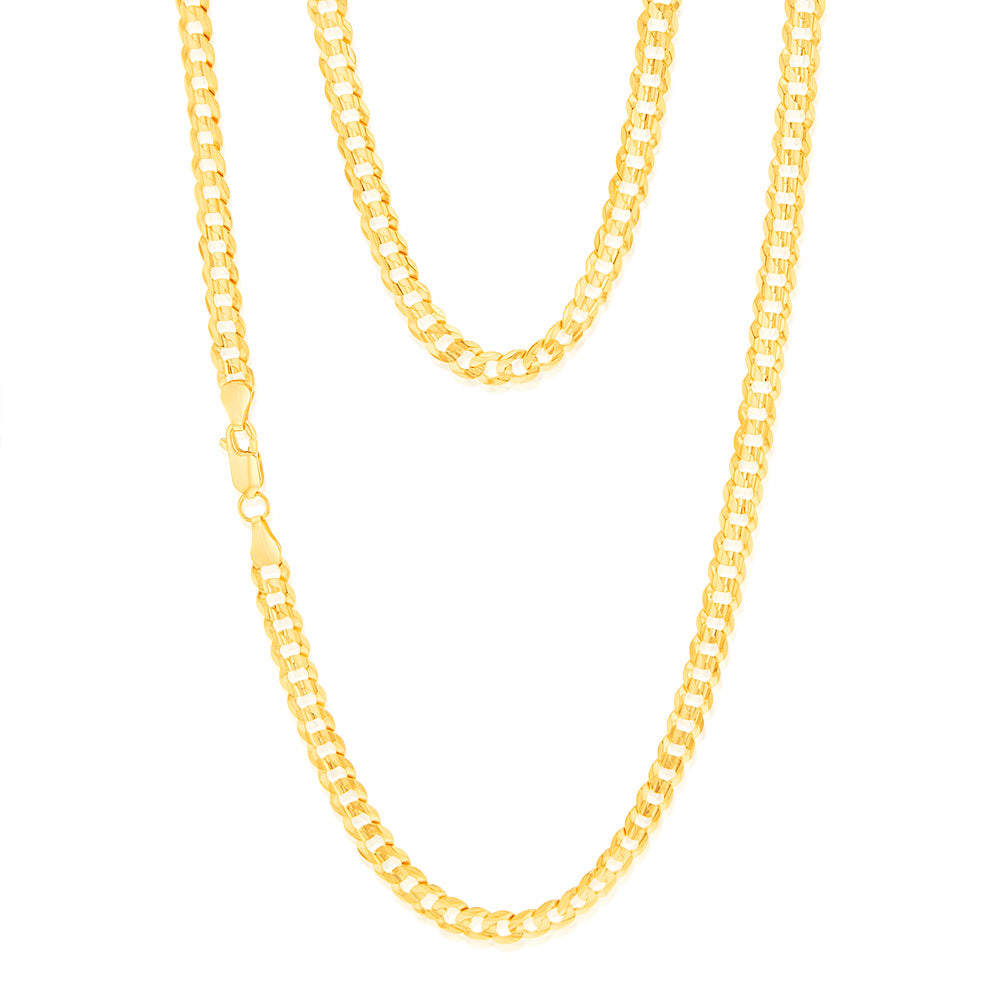 9ct Yellow Solid Gold Extra Flat Concave Curb 55cm Chain