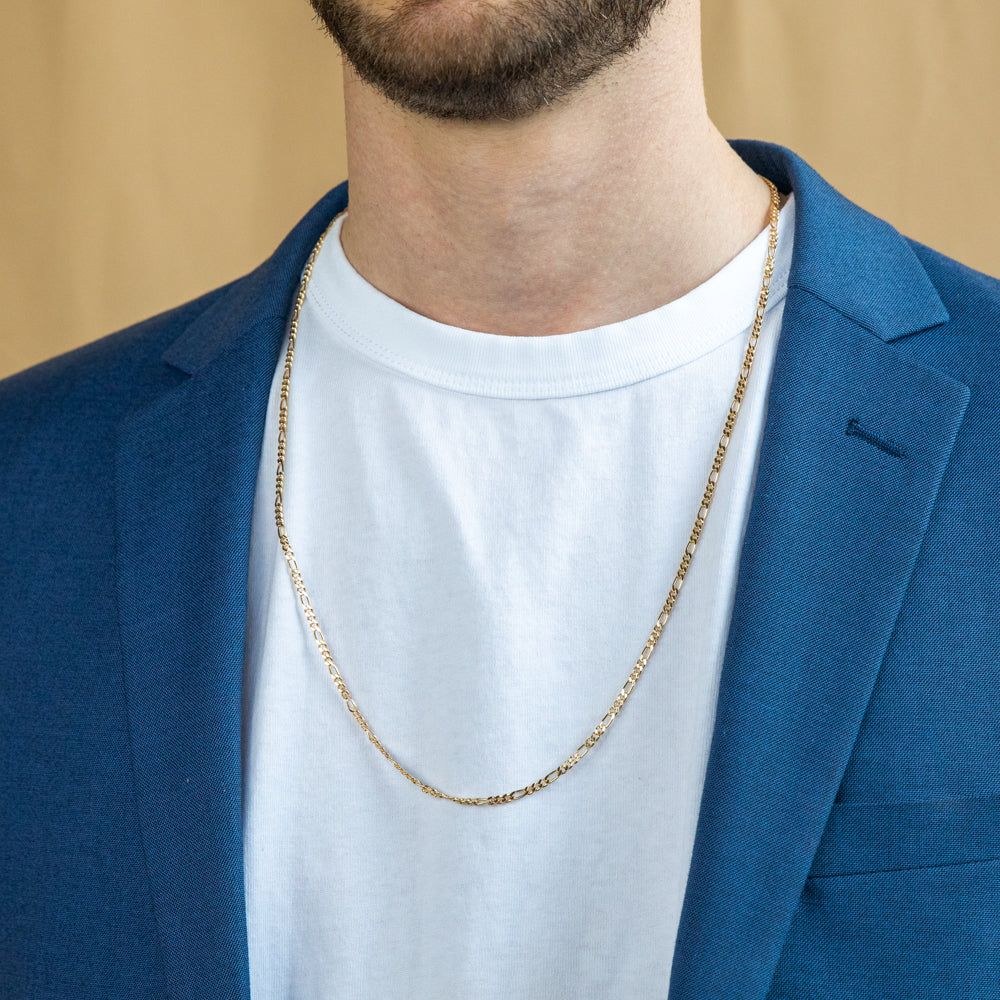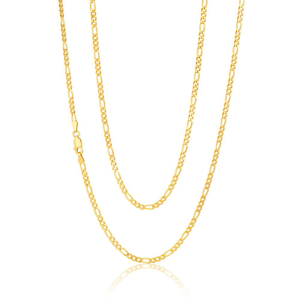 9ct Yellow Solid Gold Figaro Chain 70cm in 80 Gauge