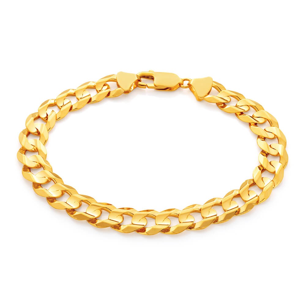 9ct Yellow Solid Gold Heavy Curb 21cm Bracelet 220 Gauge with a Parrot Clasp