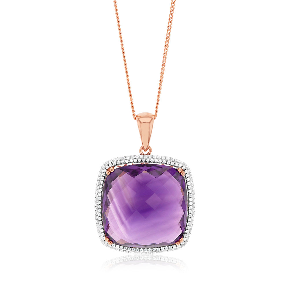 Amethyst & 0.54ct Cubic Zirconia Pendant in 9ct Rose Gold