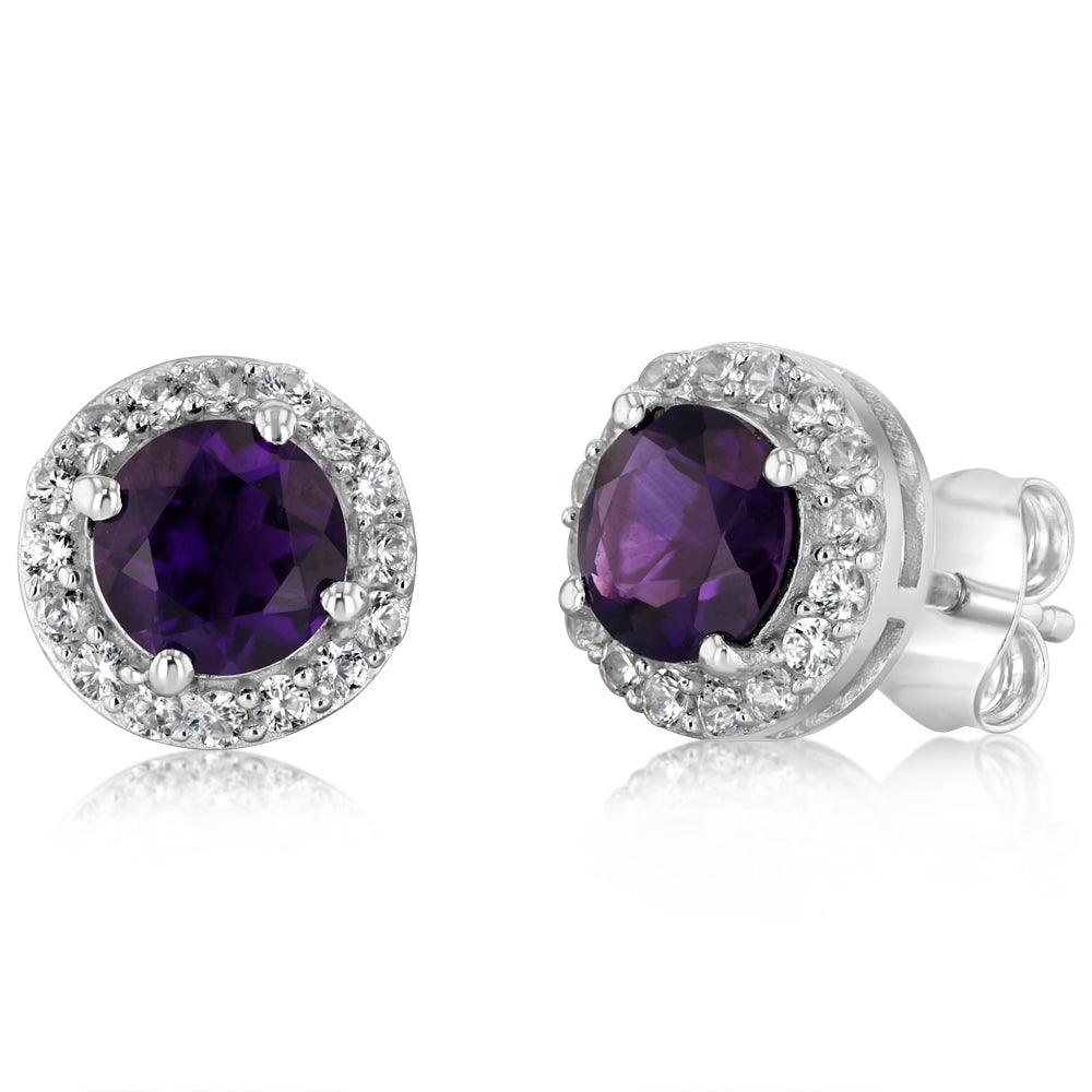 Amethyst and White Zirconia Earring and Pendant on Chain in Sterling Silver