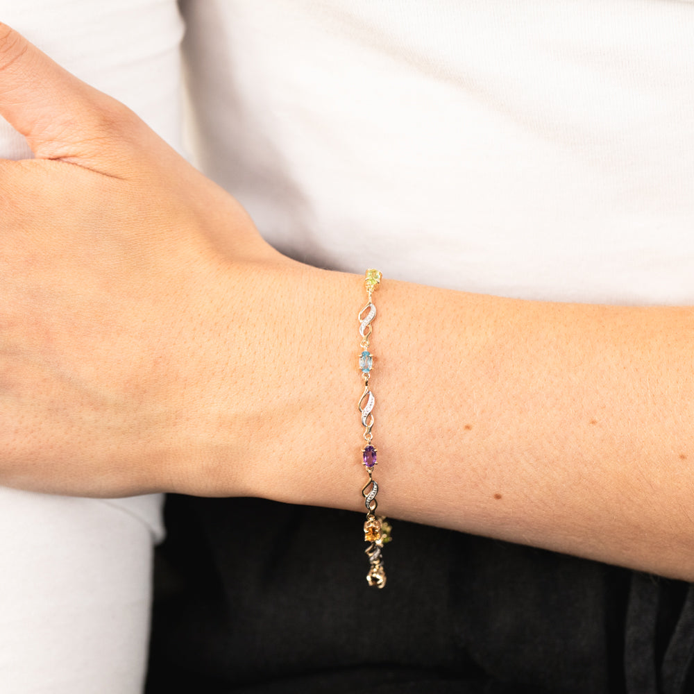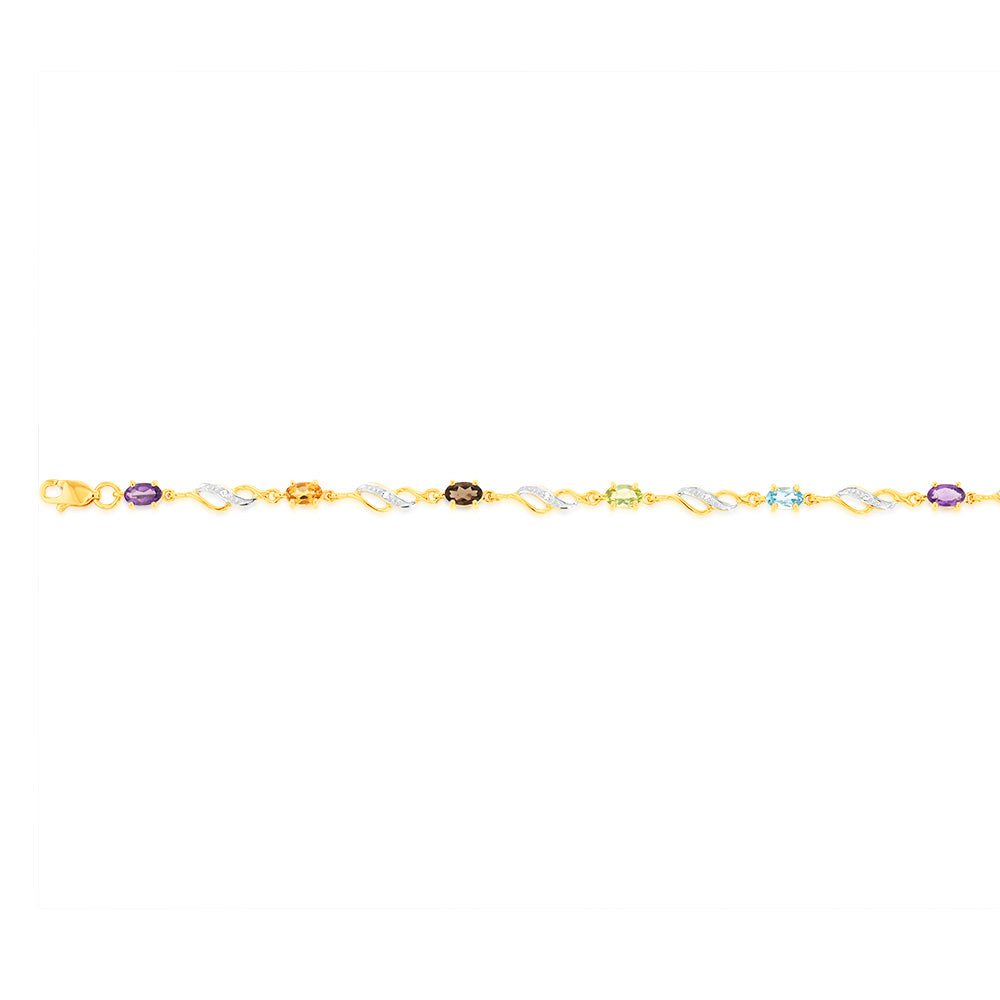 Amethyst, Citrine, Smokey Quartz, Peridot, Swiss Blue Topaz & Diamond Bracelet in 9ct Yellow Gold