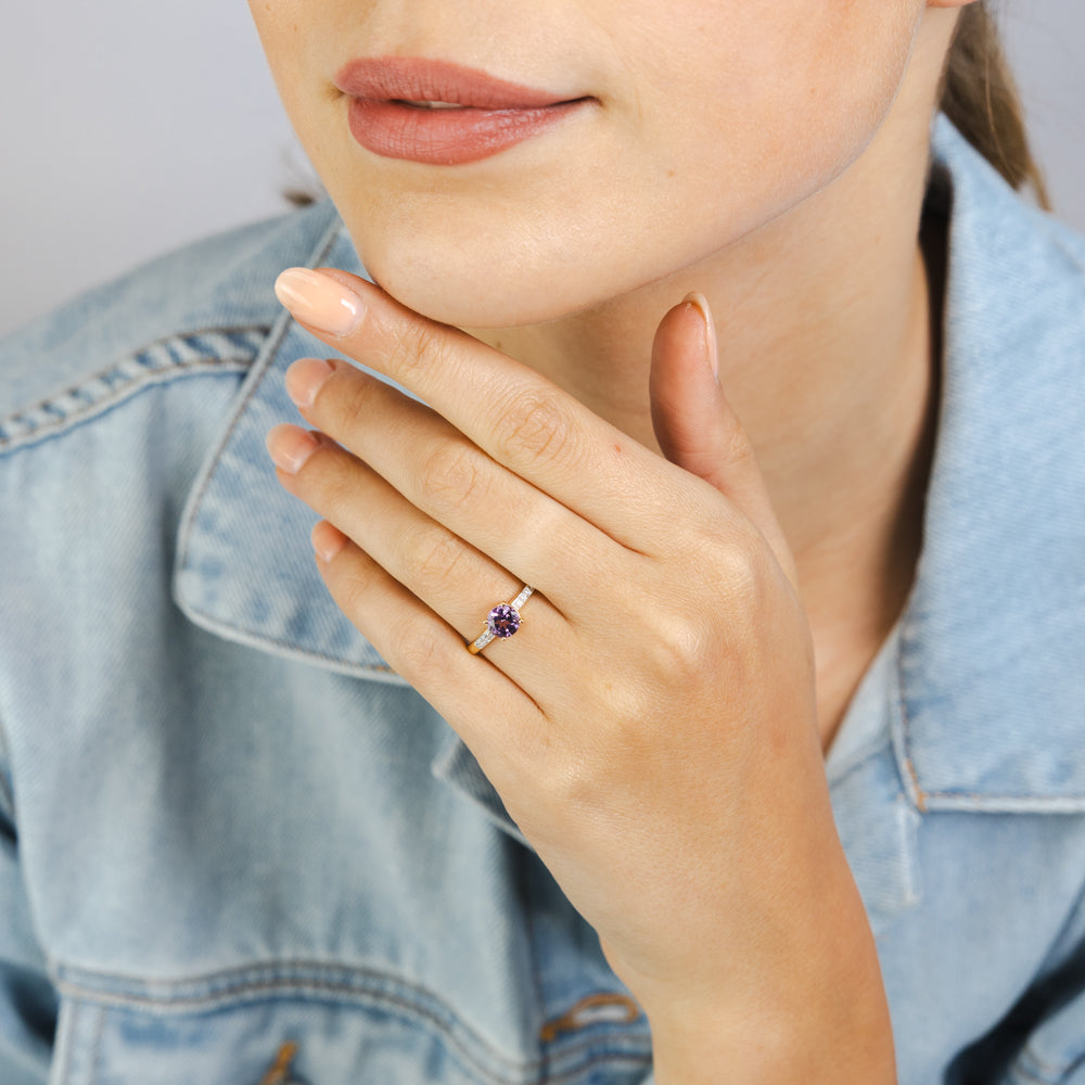 Amethyst & Zirconia Ring in 9ct Yellow Gold