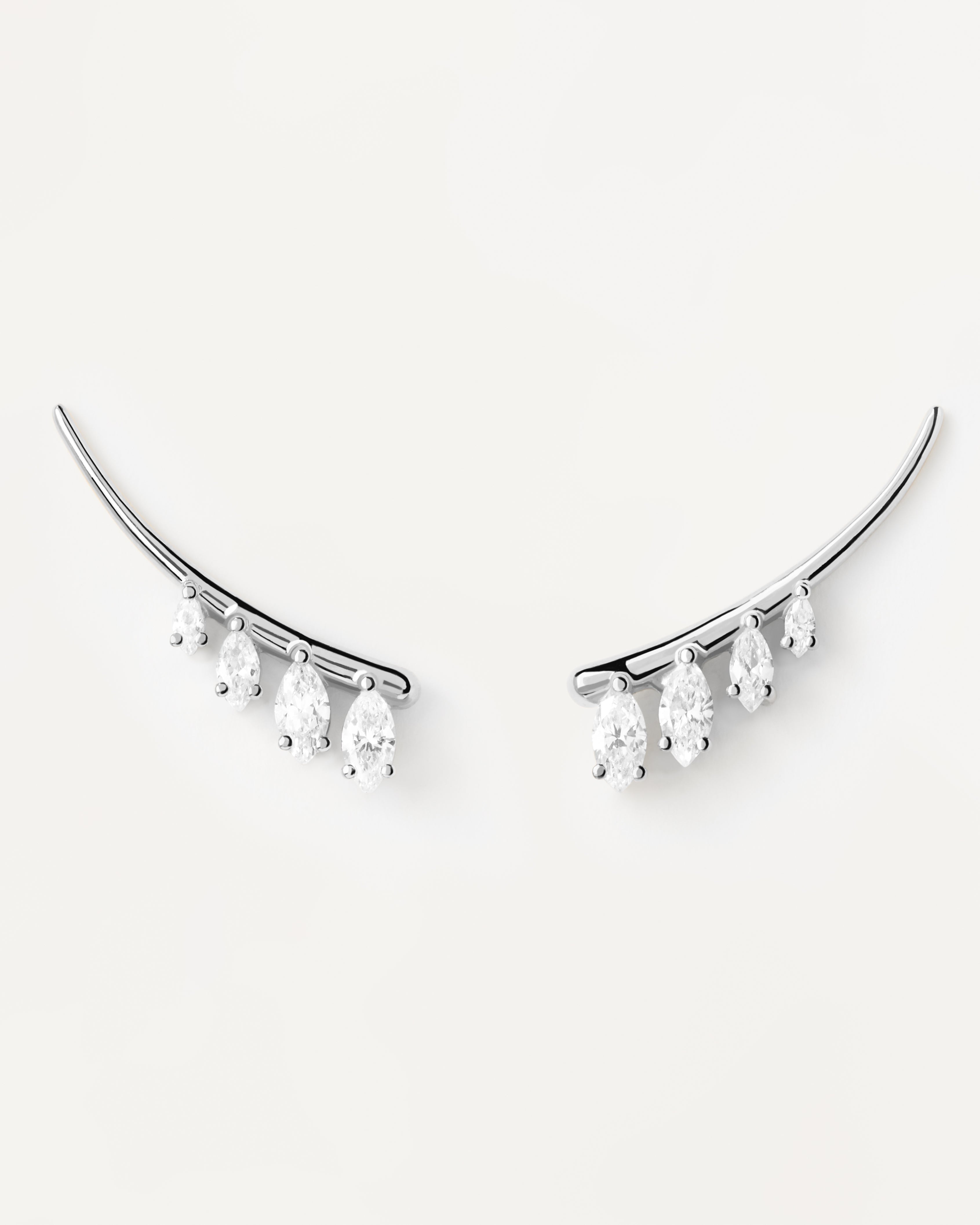 The Aqua silver Climbing earrings are made in 925 silver with four white fixed zirconia pendants.