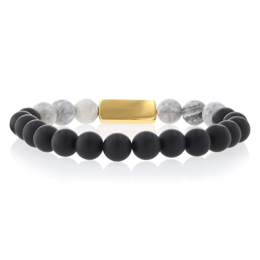 Black & Grey Stone Bead Bracelet with Gold Accent