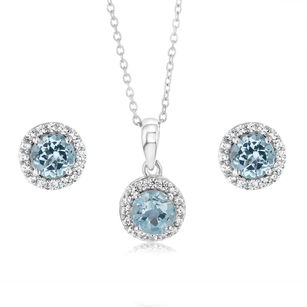 Bue Topaz and White Zirconia Earring and Pendant Set on Chain in Sterling SIlver