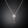 Silver-plated square cross pendant necklace, embellished with a front and side pavé of cubic zirconia.