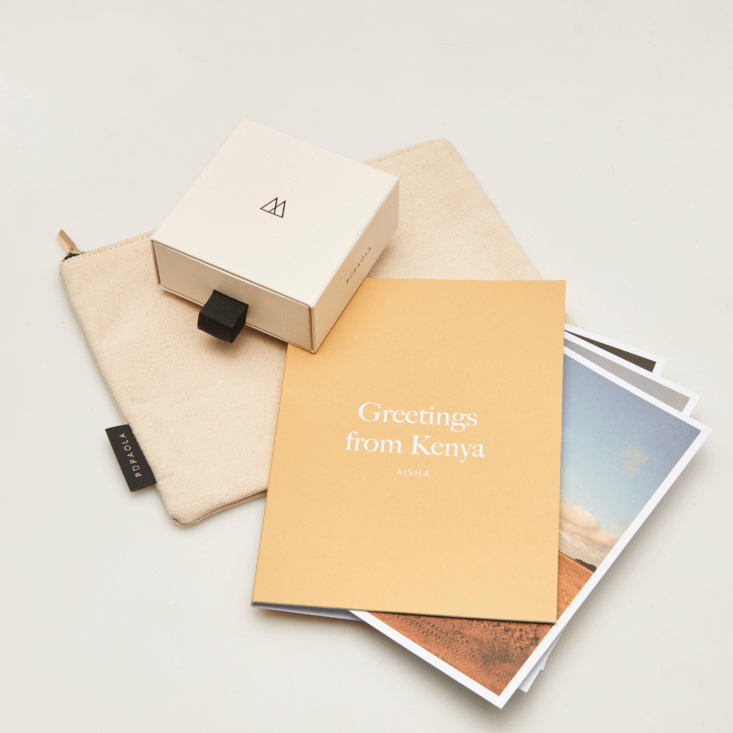 Collaborating to advance female empowerment, Aisha collection is designed in support of Afrikable, a non-profit Foundation committed to enabling women in Lamu, Kenya.