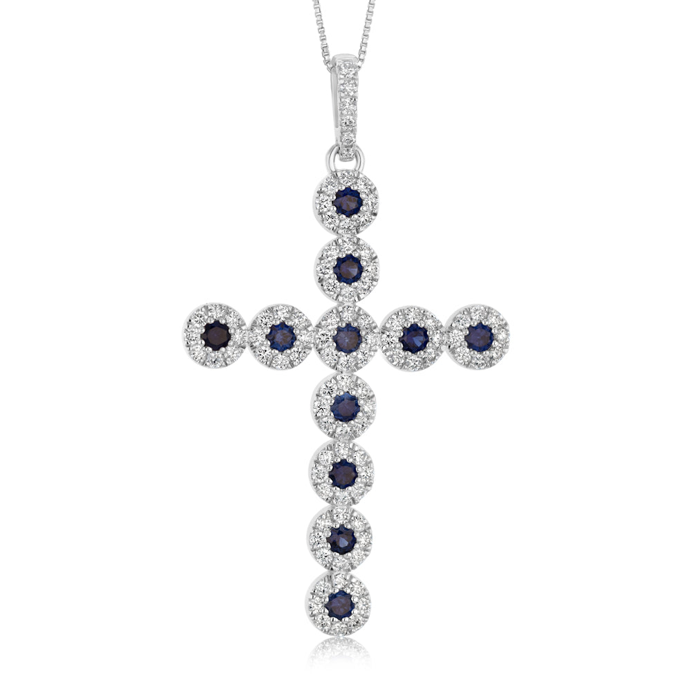Created Blue Sapphire and Luminesce Lab Grown 1.65 Carat Diamond Pendant in Sterling Silver
