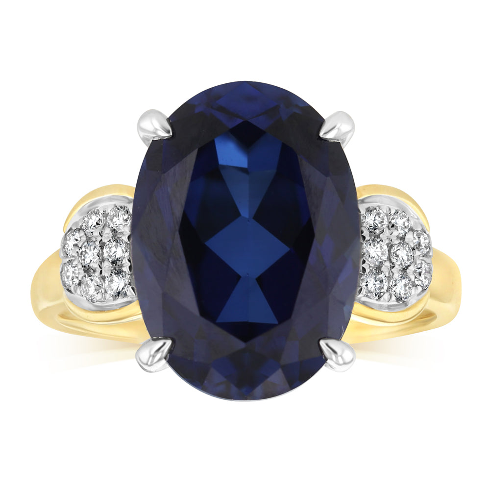 Created Blue Sapphire and Luminesce Lab Grown Diamond Ring in 9ct Yellow Gold