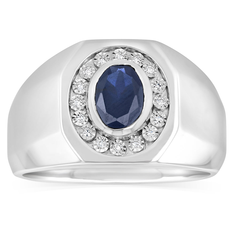 Created Blue Sapphire and Luminesce Lab Grown Gents Ring in Sterling Silver