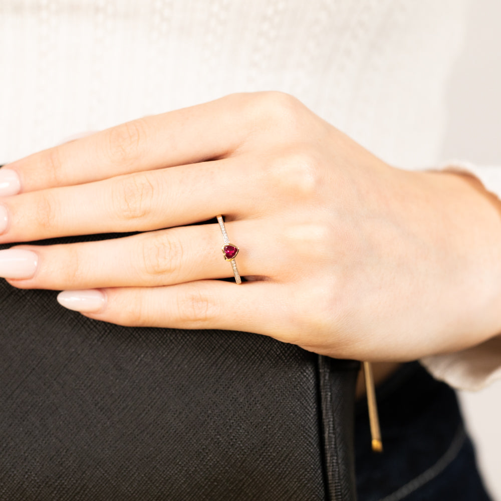 Created Ruby & Heart Shaped Diamond Ring in 9ct Yellow Gold