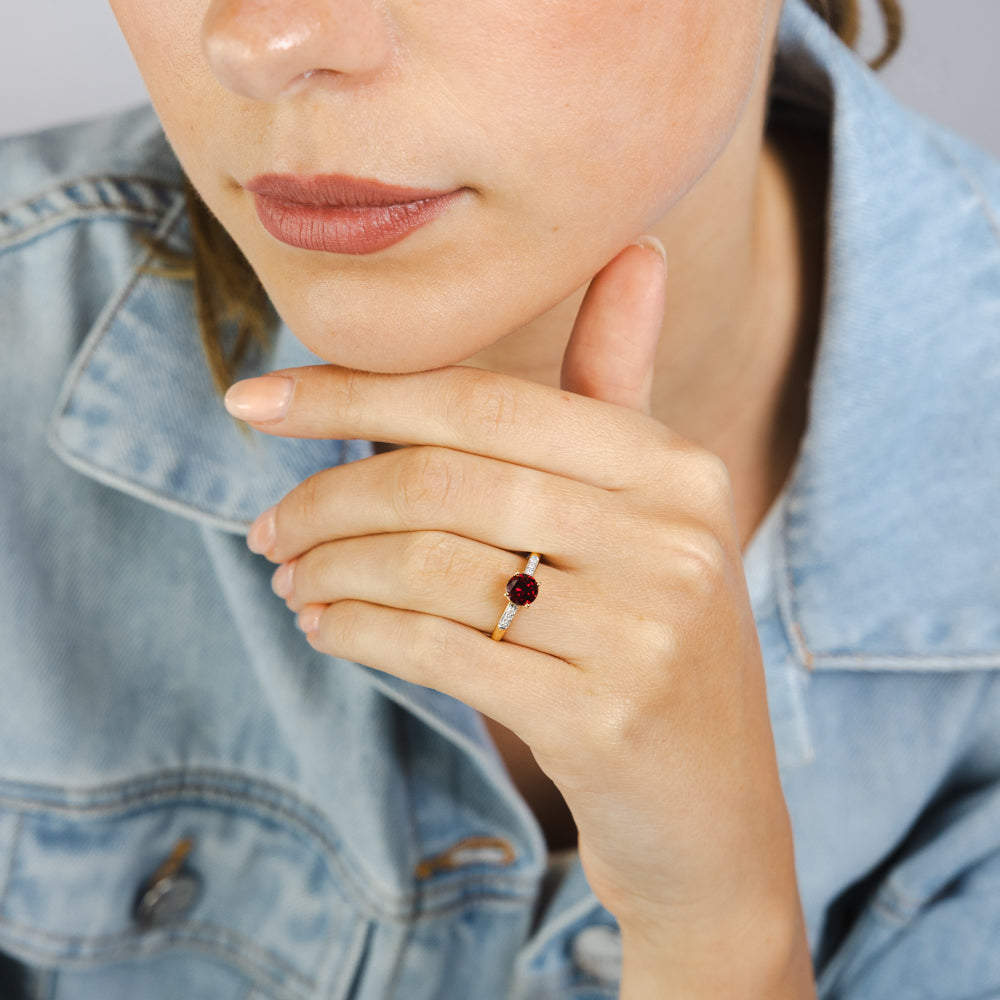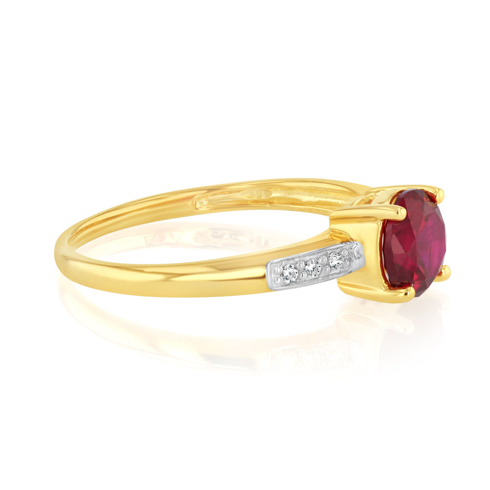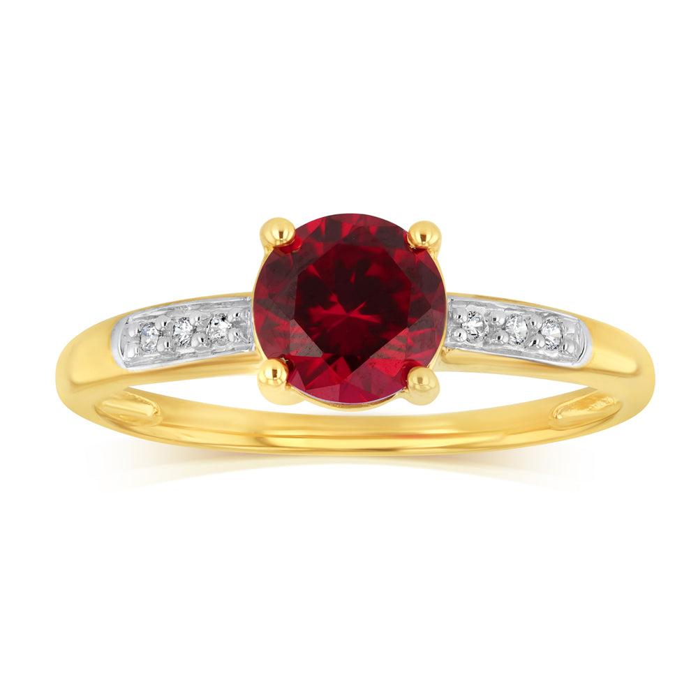 Created Ruby & Zirconia Ring in 9ct Yellow Gold