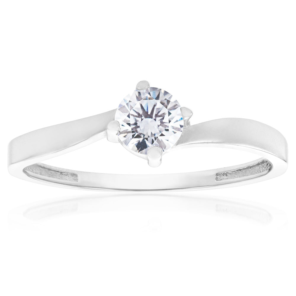 Cubic Zirconia 4 Claw Ring in 9ct White Gold