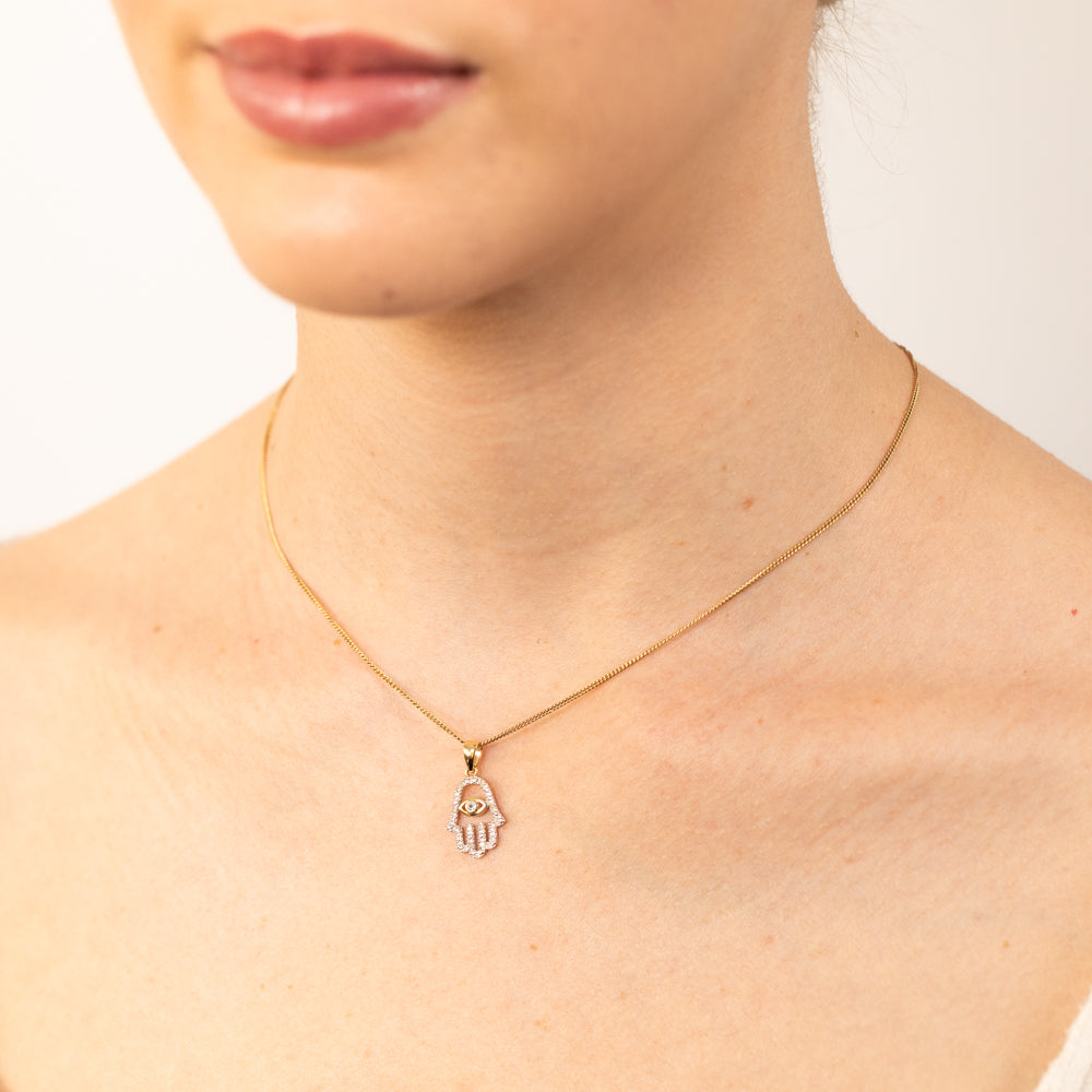 Cubic Zirconia Evil Eye Pendant in 9ct Yellow Gold