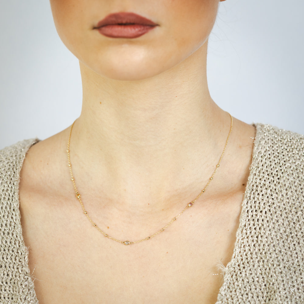 Cubic Zirconia on Adjustable 45cm Necklace in 9ct Yellow Gold