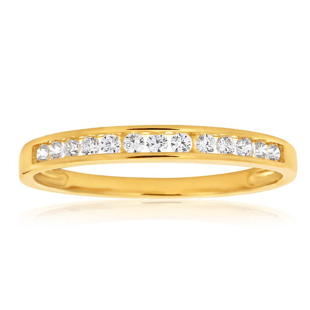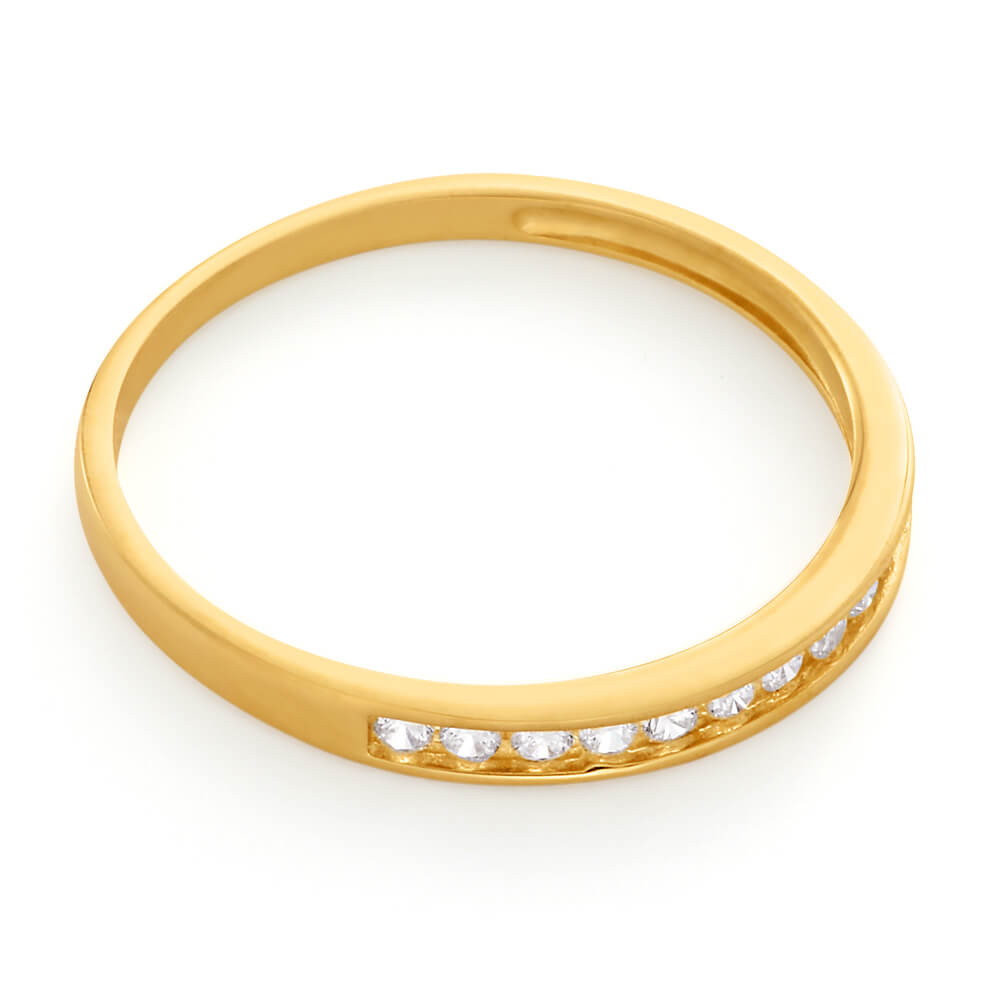 This sparkling eternity ring features cubic zirconias and is sure to please. Crafted in 9ct yellow gold.