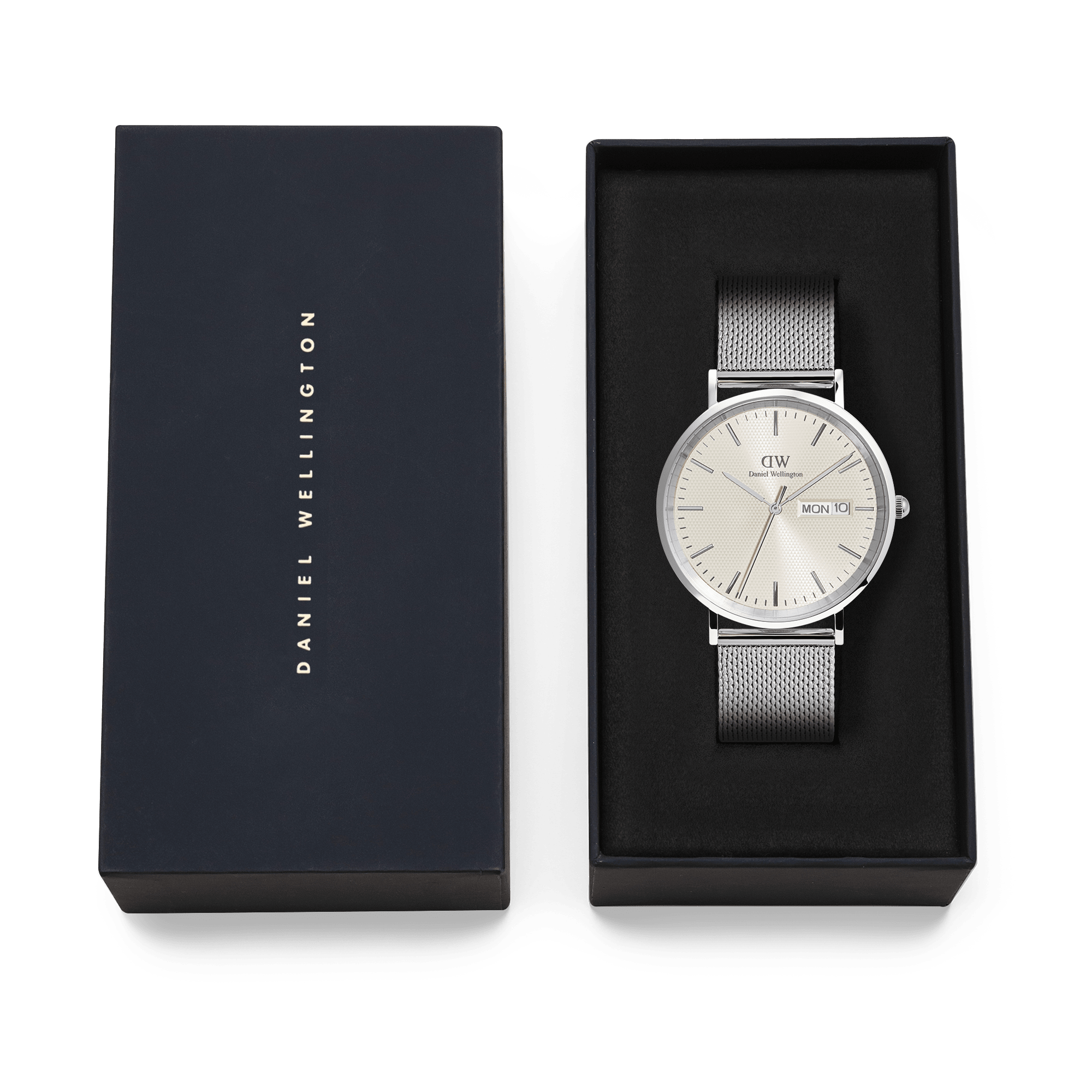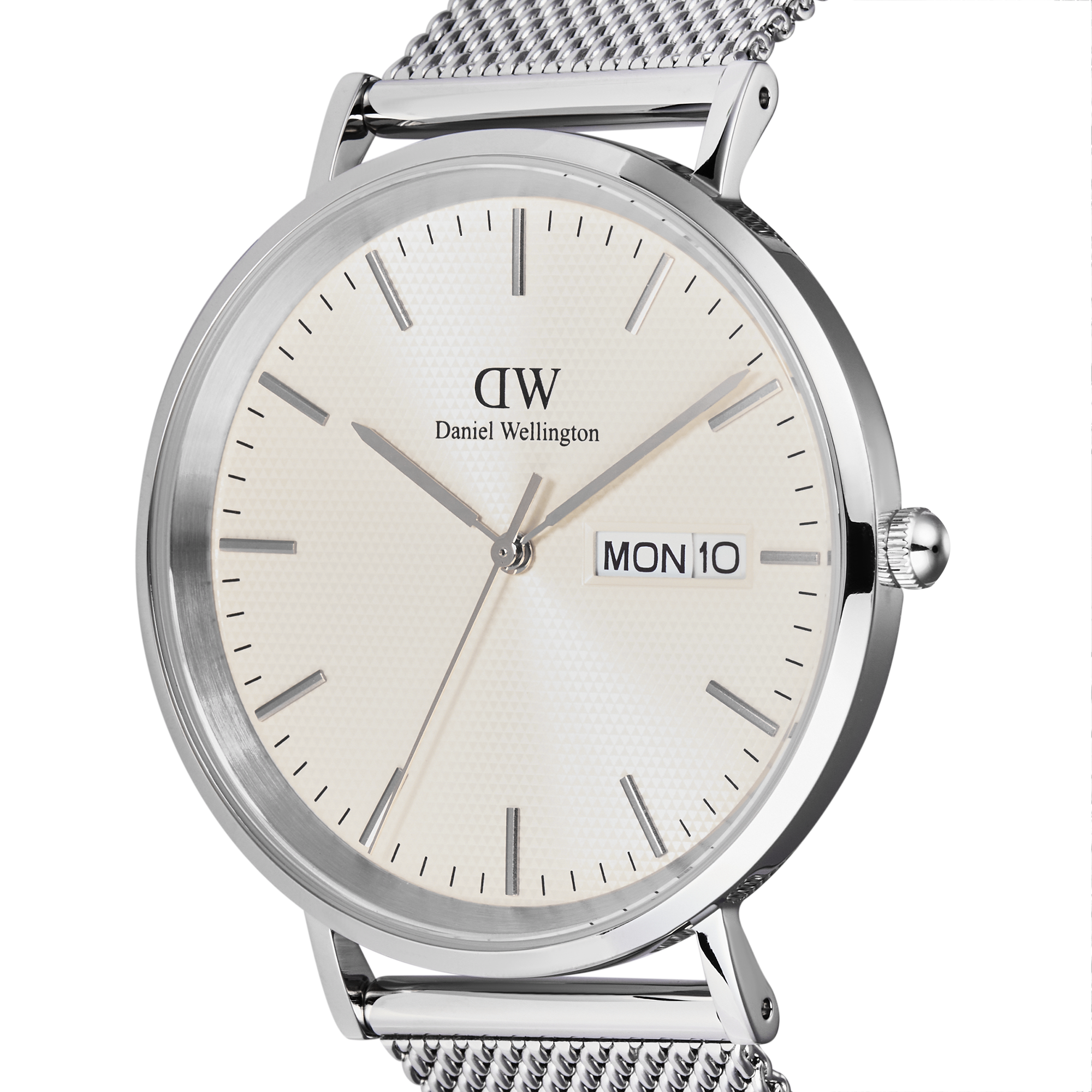 Daniel Wellington's Classic watch, known for seamlessly blending traditional craftsmanship with modern functionality, just got a well-deserved update. This design features a window that displays the date and the days of the week. The watch shares a similar case design as the previous “Multi-eye†with a circular brushed inside-chamfer between glass and dial, but the Classic Day Display boasts a pristine semi-transparent triangle pattern on the dial, creating a very subtle and elegant shimmering effect.