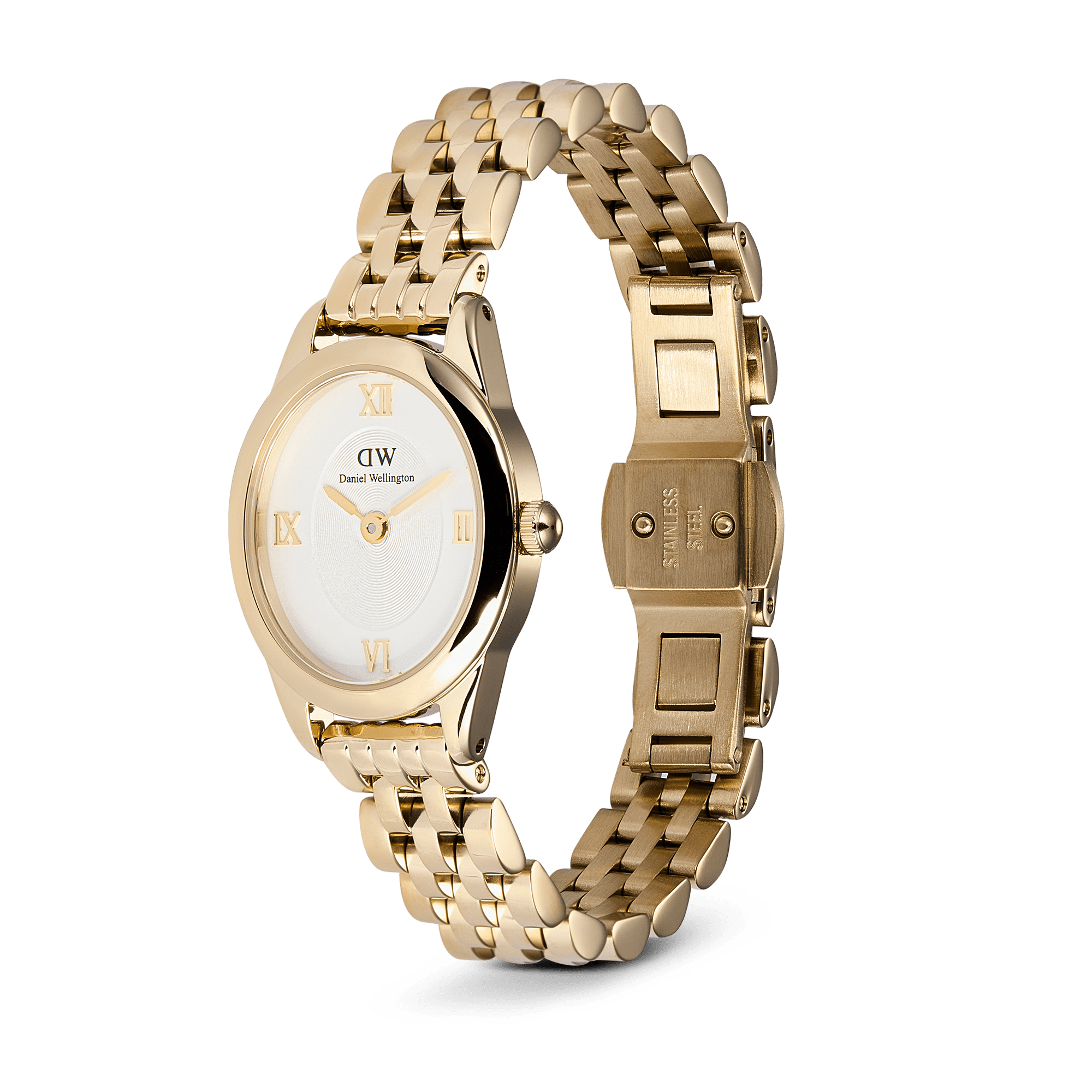 The Ophelia Mini Watch features a dial with an elegant oval shape that diverges from traditional watches. This one-of-a-kind new female watch offers a lot of newness. It comes with a newly designed beans link strap and a butterfly buckle.