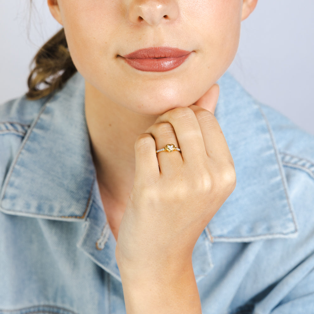 Diamond Heart Promise Ring with 13 Diamonds in Gold Plated Sterling Silver