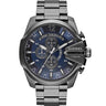 • • 59 MM blue dial in stainless steel case with a thickness of 12 MM • Display Type: Chronograph • Movement: Type Quartz • Calendar: Date Function • Water Resistant: 100 Meters In general, suitable for long periods of exposure to water i.e professional diving, long hour of swimming etc. • Dial Colour: Blue, Shape: Round • Case Material: Stainless Steel • Case Diameter: 59mm, Case Thickness 12mm • Band: Bracelet, Colour: Grey, Material: Stainless Steel • Band width: 26mm • Clasp: Deployment Clasp